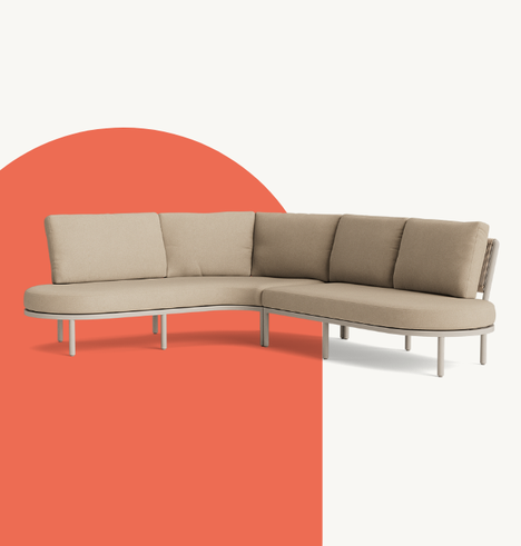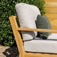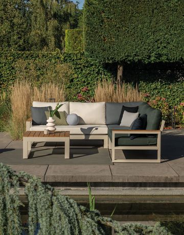 Edge hoekbank met teakhouten zijtafel en beige aluminium frame